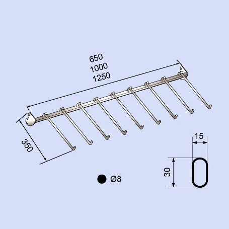 SO-2220-650 lLength: 650mm lDepth: 350mm lOval Tube: 30 x 15mm lThickness: 2mm lSteel Wire: Ø8mm SO-2220-1000 lLength: 1000mm lDepth: 350mm lOval Tube: 30 x 15mm lThickness: 2mm lSteel Wire: Ø8mm SO-2220-1250 lLength: 1250mm lDepth: 350mm lOval Tube: 30 x 15mm lThickness: 2mm lSteel Wire: Ø8mm